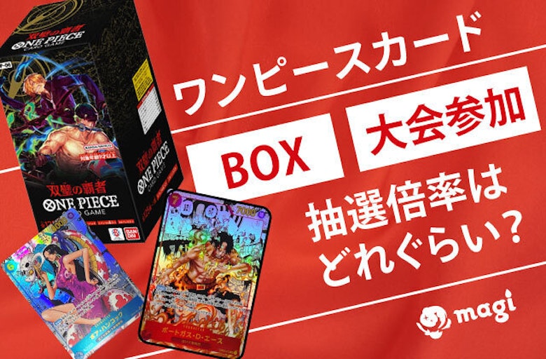 2024年2月24日に発売されたONE PIECEカードゲームの最新弾、ブースターパック『500年後の未来』【OP-07】が話題です。 今回は、そんなONE PIECEカードゲームの話題の中からワンピースカードのBOXや大会参加の抽選倍率はどれぐらい?をご紹介させて頂きます。 最後までお付き合いいただけますと幸いです。 ※本記事で紹介している全ての情報は執筆時のものとなり、内容が変更している可能性がございます。買取価格についても記載日公開した日に限り有効であり、それ以降の有効性を保証するものではありません。