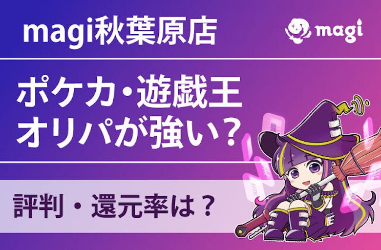2022年5月にオープンした【magi秋葉原店】。 おかげ様で多くの方に来て頂き、賑わいをみせています。 コレクションカード専門店として、よりコレクターに寄り添った商品を販売しています。 秋葉原店ではシングルカードの販売のみならず、オリパや福袋の販売も行っており、非常に人気があります。 そこで今回はそんなmagi秋葉原店のポケカ・遊戯王オリパに焦点を当てて、評判や還元率などをご紹介していきます。 購入する際の参考になれば幸いです。