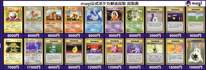 リザードン 250万 カメックス 37万 フシギバナ 25万 ミュウツー 12万 ライチュウ 初版 12万 サンダー 初版10万 ギャラドス 初版8万 フーディン 初版8万 キュウコン 初版7万 ピカチュウ 初版7万 ニドキング 初版5.5万 ピッピ 初版5万 ラッキー 初版5万 カイリキー 初版4万 エビワラー 初版4万 レアコイル 初版4万 ニョロボン 初版4万 ヒトカゲ 初版1.2万 ゼニガメ 初版1万 フシギダネ 初版1万