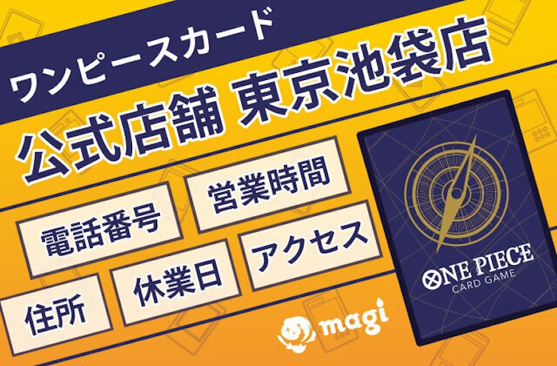 今回の記事では、ワンピースカードゲーム 公式ショップ 東京池袋店の住所・電話番号・営業時間・休業日・アクセスについて紹介してきました。東京池袋店はサンシャインシティのワールドインポートマートビル3Fにあり、東池袋駅からも近いです。