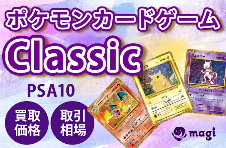これまでmagiではポケモンカードゲームについて幾つかの記事をご紹介してきました。 今回はそんなポケモンカードゲームの話題の中からポケモンカードゲームClassicの人気カードPSA10の買取価格一覧・取引相場まとめについてご紹介させていただきます。 最後までお付き合いいただけますと幸いです。 ※本記事で紹介している全ての情報は執筆時のものとなり、内容が変更している可能性がございます。買取価格についても記載日公開した日に限り有効であり、それ以降の有効性を保証するものではありません。 また、この記事はPSA10の買取募集金額並びに取引実績のあるPSA10価格より推定価格を算出して作成しています。