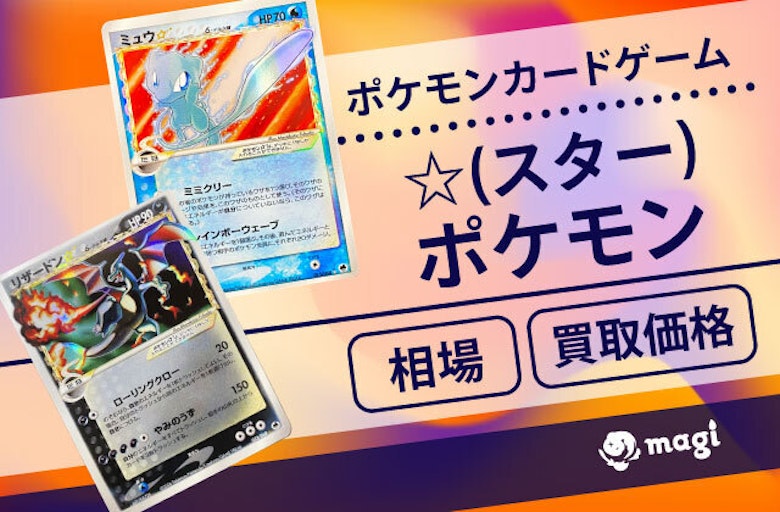 これまでmagi(マギ)ではポケモンカードゲームに関する記事を幾度か取り上げさせていただきました。 今回はその中でも、「ポケモンカードゲーム」シリーズの☆(スター)ポケモンの相場・買取価格についてご紹介させて頂きます。 最後までお付き合いいただけますと幸いです。 ※本記事で紹介している全ての情報は執筆時のものとなり、内容が変更している可能性がございます。買取価格についても記載日公開した日に限り有効であり、それ以降の有効性を保証するものではありません。