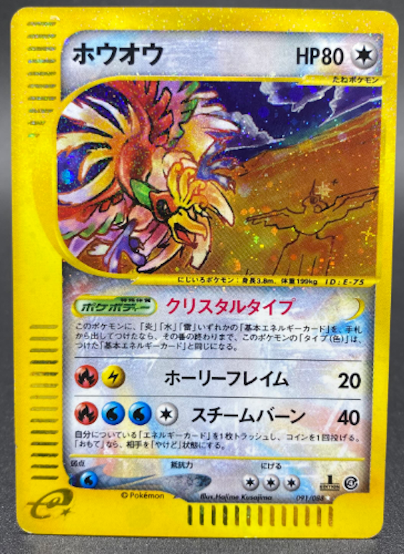 (引用:ポケモンカードゲーム公式ホームページ 様) 発売日: 2002年8月23日 希望小売価格:191円(税抜き) カード/5枚 『裂けた大地』では前弾の「ルギア」に続き、クリスタルタイプを持つ「ホウオウ」が収録されています。