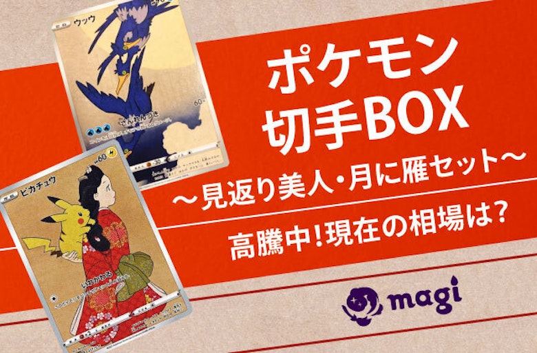 これまでmagi(マギ)ではポケモンカードゲームに関する記事を幾度か取り上げさせていただきました。 今回はその中でも、ポケモンカードから「ポケモン切手BOX~見返り美人・月に雁セット~」が高騰中!現在の相場は?についてご紹介させて頂きます。 最後までお付き合いいただけますと幸いです。 ※本記事で紹介している全ての情報は執筆時のものとなり、内容が変更している可能性がございます。買取価格についても記載日公開した日に限り有効であり、それ以降の有効性を保証するものではありません。