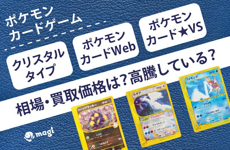 これまでmagi(マギ)ではポケモンカードゲームに関する記事を幾度か取り上げさせていただきました。 今回はその中でも、「ポケモンカードゲーム」シリーズのクリスタルタイプ、ポケモンカードWeb、ポケモンカード★VSの相場・買取価格についてご紹介させて頂きます。 最後までお付き合いいただけますと幸いです。 ※本記事で紹介している全ての情報は執筆時のものとなり、内容が変更している可能性がございます。買取価格についても記載日公開した日に限り有効であり、それ以降の有効性を保証するものではありません。