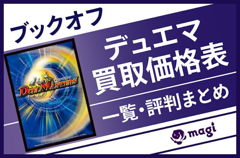 以上、ブックオフの買取・評判をまとめていきましたがいかがでしたでしょうか? ブックオフでもカードショップに勝るとも劣らない価格で買取・販売しているお店が多くあり、魅力的な店舗も多いです。 それぞれのお店で力を入れている年代や種類が異なるので、是非お近くのブックオフもチェックして、デュエマを売買する際の選択肢の1つとして『ブックオフ』を入れてみてください。 最後まで読んで頂きありがとうございました。
