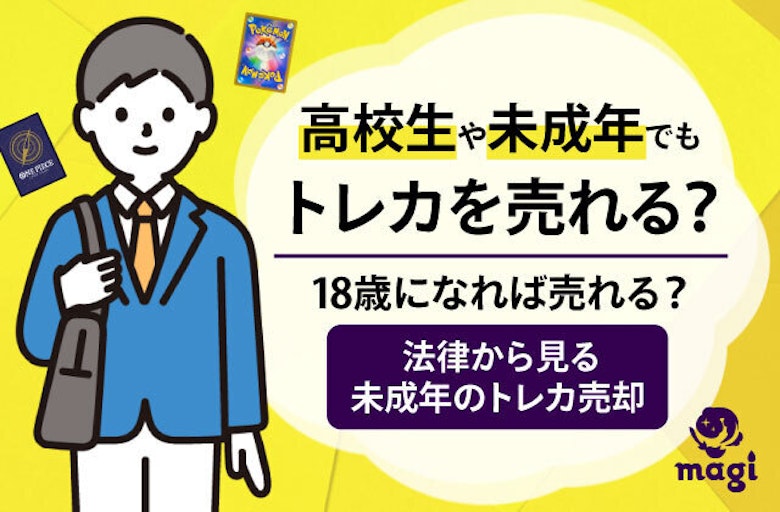 magiではこれまで様々なトレーディングカードの話題を取り上げてまいりました。 今回は高校生や未成年でもトレカを売れる?18歳になれば売れる?についてご紹介させて頂きます。 最後までお付き合いいただけますと幸いです。 ※本記事で紹介している全ての情報は執筆時のものとなり、内容が変更している可能性がございます。買取価格についても記載日公開した日に限り有効であり、それ以降の有効性を保証するものではありません