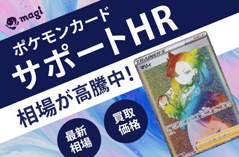 これまでmagi(マギ)ではポケモンカードゲームに関する記事を幾度か取り上げさせていただきました。 今回はその中でも、ポケモンカードからポケモンカード サポートHRが高騰中!最新相場・買取価格は?についてご紹介させて頂きます。 最後までお付き合いいただけますと幸いです。 ※本記事で紹介している全ての情報は執筆時のものとなり、内容が変更している可能性がございます。買取価格についても記載日公開した日に限り有効であり、それ以降の有効性を保証するものではありません。