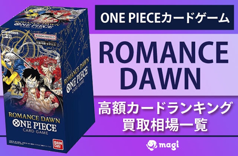 2022年7月22日に発売したONE PIECEカードゲームの記念すべきブースターパック第1弾『ROMANCE DAWN』【OP-01】が最近では話題になりました。 ここからは早速、そんな『ROMANCE DAWN』の高額カードランキングや買取相場一覧についてご紹介させて頂きます。 最後までお付き合いいただけますと幸いです。 ※本記事で紹介している全ての情報は執筆時のものとなり、内容が変更している可能性がございます。買取価格についても記載日公開した日に限り有効であり、それ以降の有効性を保証するものではありません。