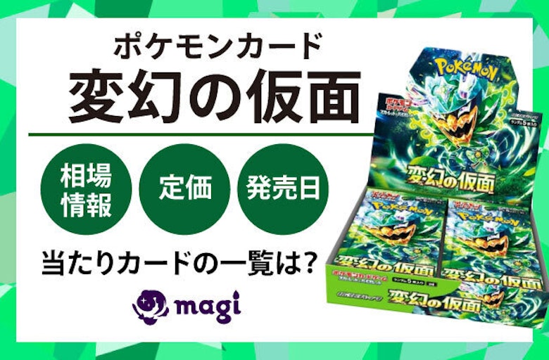 2024年4月26日に発売のポケモンカードゲーム拡張パック最新弾『変幻の仮面』が現在話題になっております。 今回は、そんなポケモンカードゲームの『変幻の仮面』の相場情報・定価・発売日・収録カード一覧についてご紹介させて頂きます。 最後までお付き合いいただけますと幸いです。