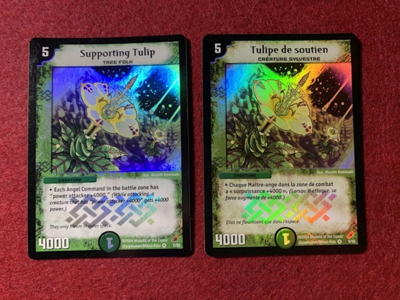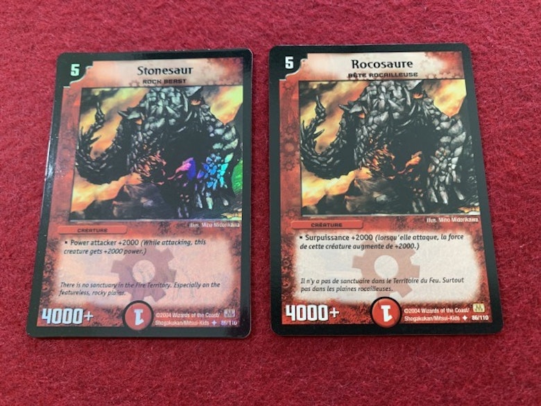 皆さんこんにちは。海外版デュエマコレクターのなず(@snowfaily_dm)です! 前回の記事でも触れさせて頂いた通り、近頃は海外版デュエマもついに第三次ブームまで来た様に思えます。 そこで海外版デュエマが流行るほど、熱心なコレクターが増えるほどに深刻化していく大きな問題を懸念しています。偽装品問題ですね。 日本ではカードこそ流通するようになりましたが、海外版デュエマについての知識は殆ど知れ渡っていません。また、十分なデータが得られるほど海外版デュエマに触れているという方は尚更少なく、少ないながらも存在する悪意に対して市場は余りにも無防備とも言えます。 という事で、今回はカード購入の際の一つの指針として、海外版デュエマにまつわる様々な違いや仕様、偽装品について解説させて頂きたいと思います。 (尚、中国語版、韓国語版については判別が容易で、偽装品のリスクが今のところ非常に低い為本記事では取り扱いません。)