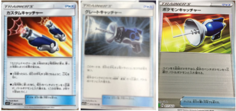 新レギュのシティリーグの上位のデッキや自主大会の優勝レシピを見ると基本的には<カスタムキャッチャー>+<グレートキャッチャー>で<グズマ>の役割を補おうとしている。<グレートキャッチャー>があれば<グズマ>よりも簡単にGXポケモンをベンチから呼ぶことができる。逆にVポケモンは<グレートキャッチャー>で呼ばれないといった大きなメリットを持っている。このことは新レギュにおいてとても大きなメリットであると考えている。<カスタムキャッチャー>に関しては2枚同時に使わなくてはならないため<グズマ>よりも圧倒的に困難な上、試合中に最大で2回しか呼び出されない。しかし、絶対にベンチを呼び出さないと倒せないわけではない。