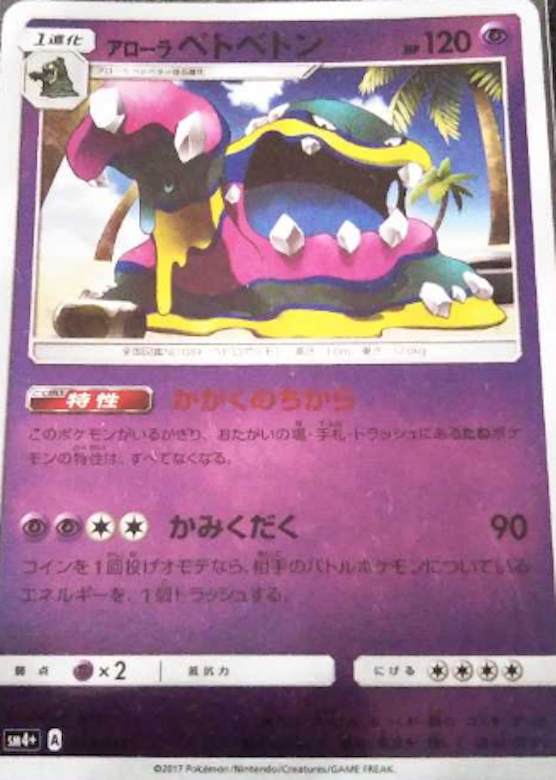 新レギュでは特性を消す手段が格段に減った。新環境はたねポケモンを中心としたデッキが多く、<アローラベトベトン>で特性を消せなくなった影響は大きい。<無人発電所>は新レギュで特性を消せる数少ないカードだ。