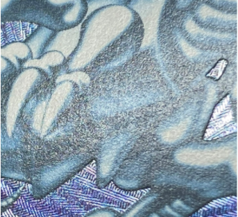インク飛びやムラなく印刷されているかを判断します。 ポケカのSR以上のような加工では仕様上同じところに印刷ムラが出ることがあります。これは減点しません。レリーフずれは加味します。