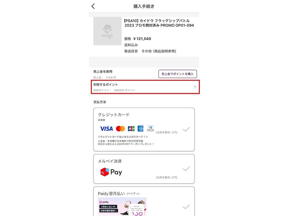magiポイントでのお支払い