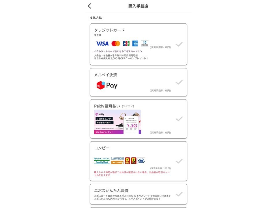 次に支払い方法の選択をお願いいたします。