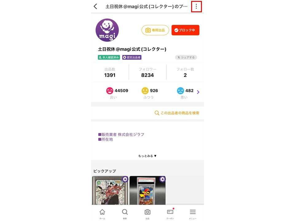 1. アプリ版magiでブロックしたいユーザーのプロフィール画面を開きます