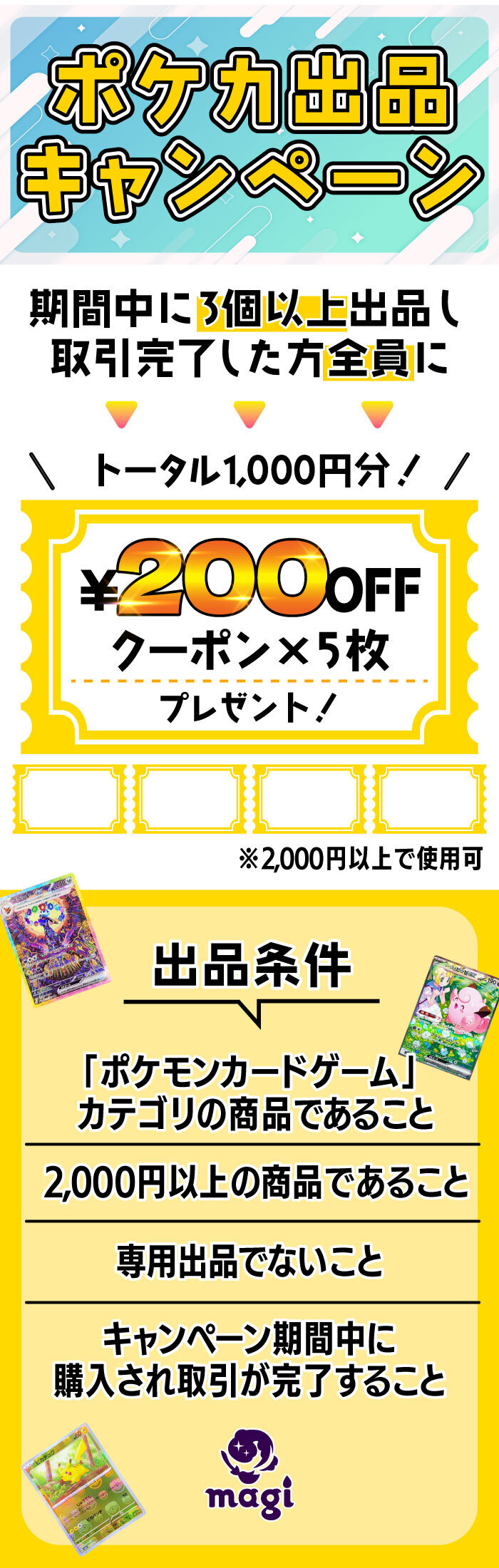 1,000円分のクーポンが必ずもらえる!ポケカ出品キャンペーン⚡