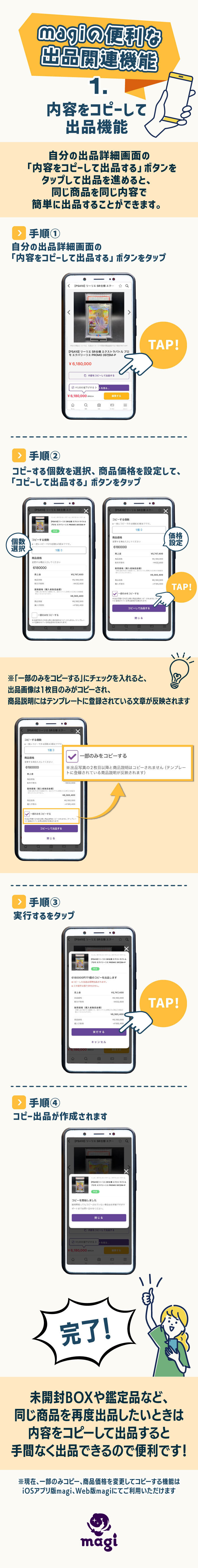 いつもmagiをご利用いただき、誠にありがとうございます。 magi運営事務局でございます。 知っておくと便利なmagiの出品関連機能をまとめてご紹介いたします。![]()