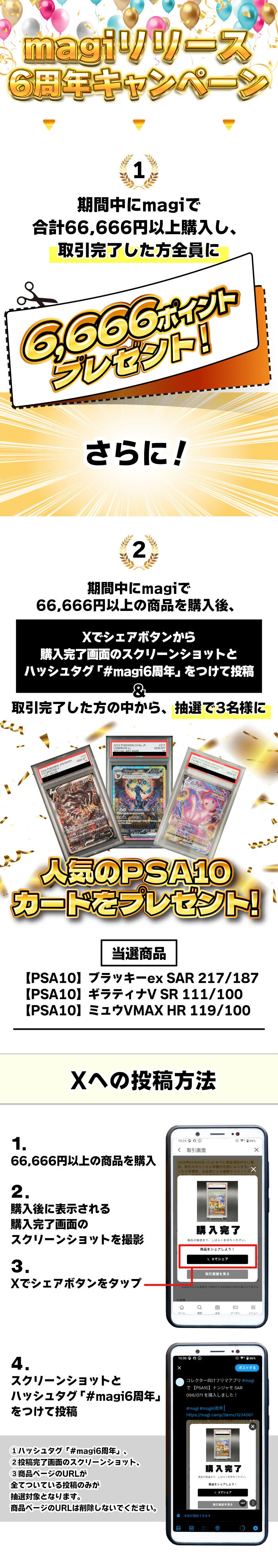 【本日最終日】6,666ポイントが必ずもらえる&PSA10のカードが当たる!magiリリース6周年キャンペーン🎈