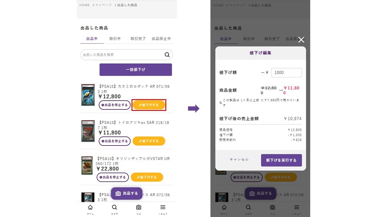 Web版magiにて、出品した商品一覧ページで値下げできるようになりました!