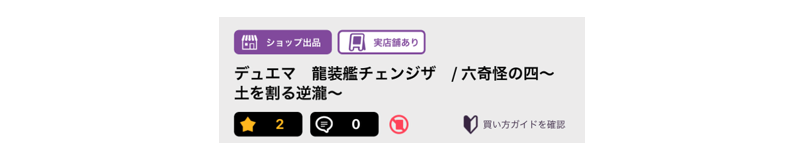 また、実店舗を運営されているカードショップ様が出品した商品には「実店舗あり」アイコンが表示されます。