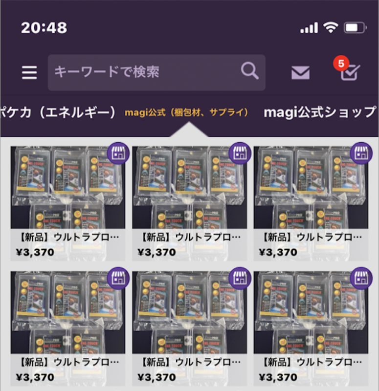 いつもmagiをご利用いただきありがとうございます! magi運営事務局でございます。 magi公式アカウントにて、人気の「ウルトラプロ 35pt マグネットローダー」を販売中です。 ぜひお求めください。販売価格は1個で送料込み780円、5個セットで送料込み3,370円です。 本商品はアプリの「magi公式(梱包材、サプライ)」のタブにて販売中です。