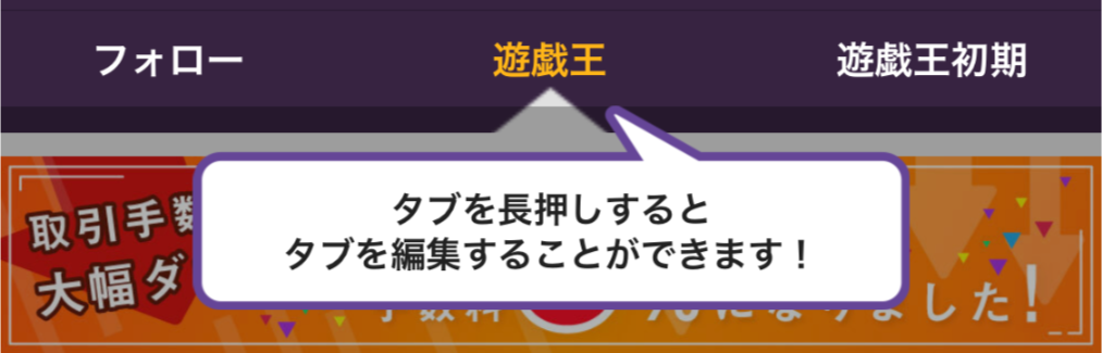 ※iOS版のみアプリトップ画面のタブ名の長押しでもタブ編集画面を開くことができます。