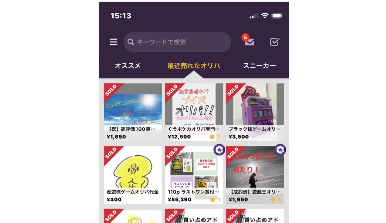 いつもmagiをご利用いただきありがとうございます! magi運営事務局でございます。 アプリ版magiにおいて、「最近売れたオリパ」タブがリリースされました。表示位置は「オススメ」タブの右隣となっております。 こちらのタブに表示される商品の条件は以下のとおりとなっております。 ・商品名に「オリパ」または「福袋」を含むかつ、取引が取引完了ステータスになった商品について、売れた日時が新しい順に掲載されております ・専用出品機能が使われた商品は表示されません 売れ筋のオリパや人気のオリパ出品者様を探す際にぜひご利用ください! ご不明点などございましたら、お問い合わせよりご連絡ください。 お問い合わせは、アプリ左上メニュー→「お問い合わせ」からご利用いただけます。 引き続き、magiをよろしくお願いいたします。