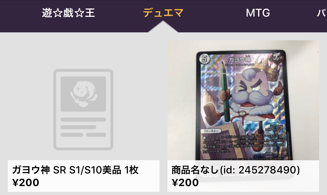 画像なし、商品名なしで出品した場合、それぞれこちらの様に表示されます。