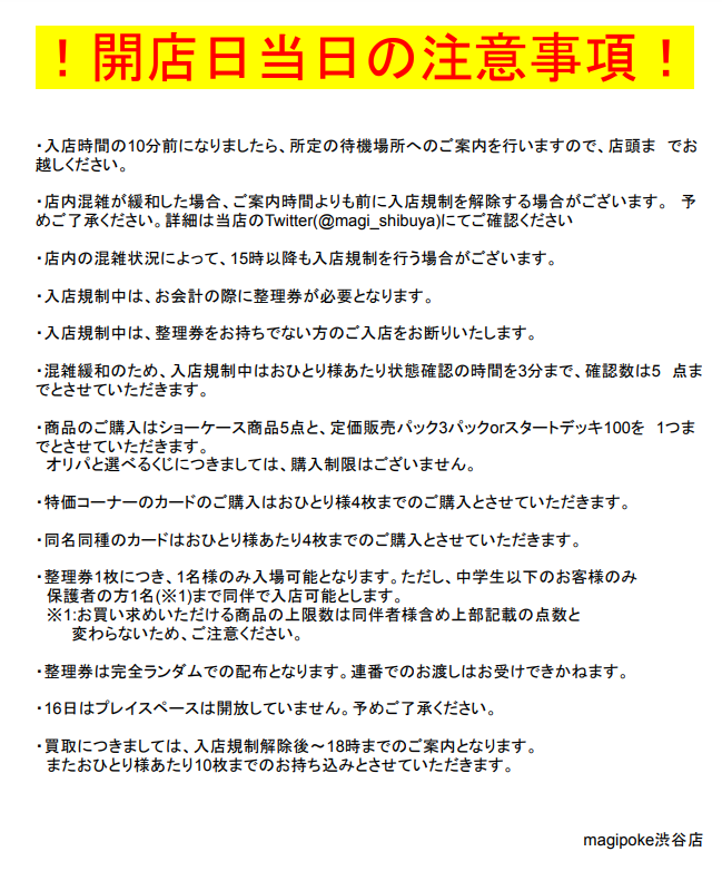 〒150-0041 東京都渋谷区神南1-21-3 渋谷モディ 7F magipoke渋谷モディ店(ポケカ専門店)