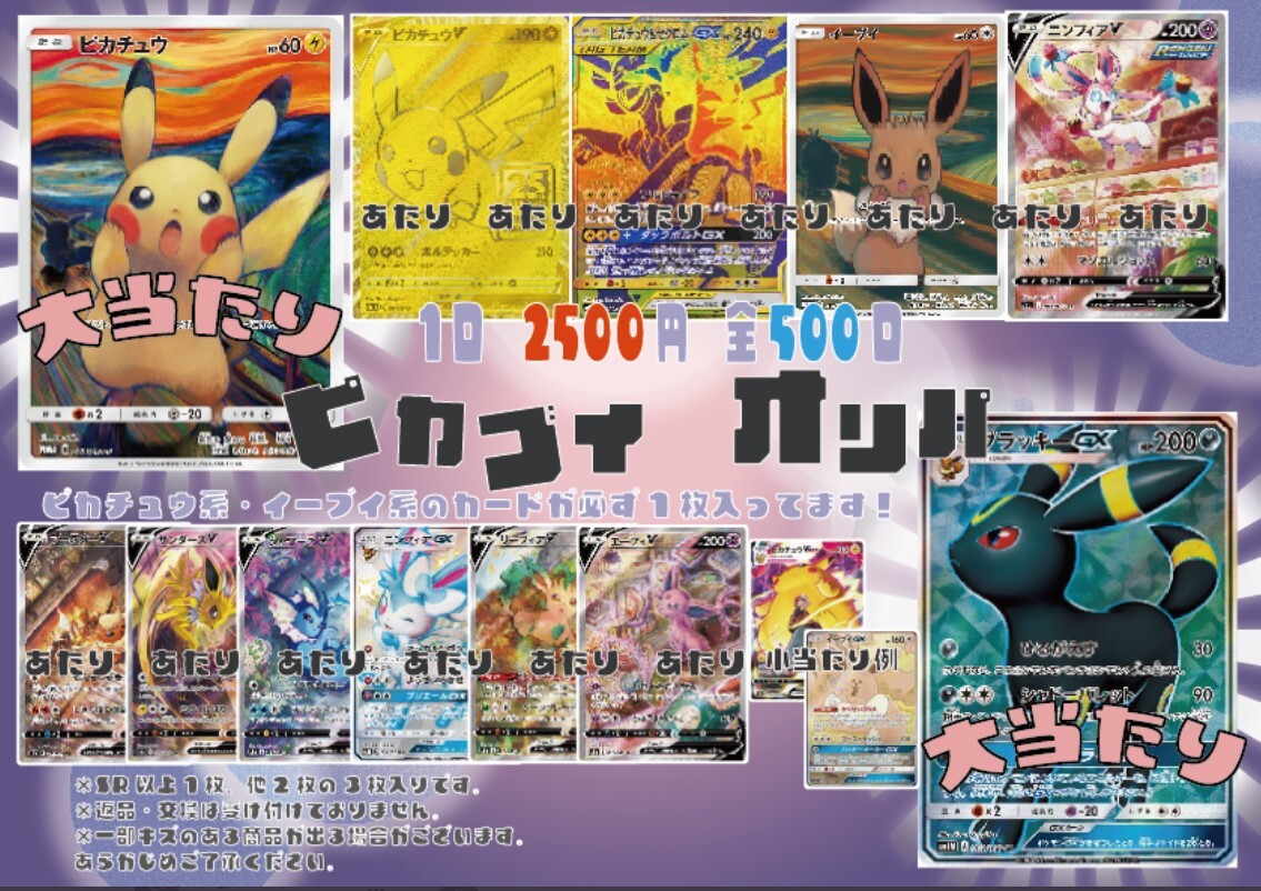 大当たりにはムンクピカチュウ、ブラッキーGXなどなど、ピカ&ブイをどどんと封入しました‼