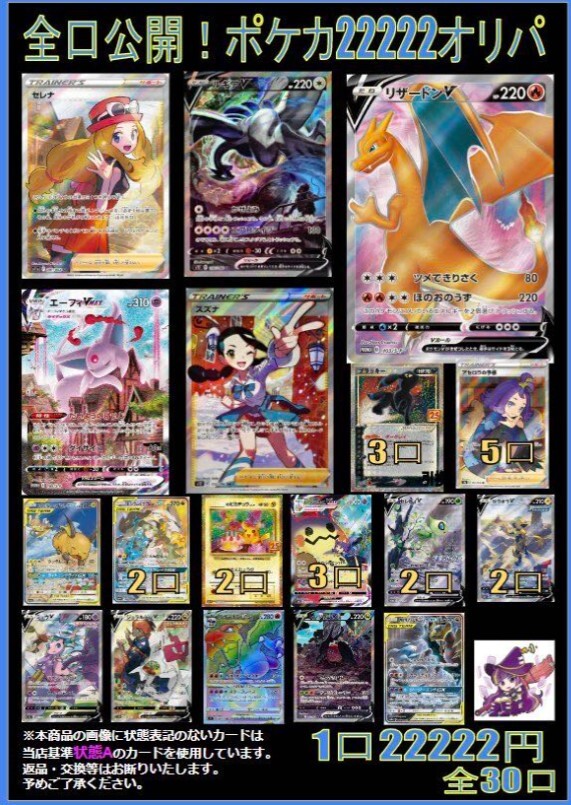 magi秋葉原店のポケカオリパ「22222円/12000円」をアプリ併売開始!ルギアV SA、リザードンV プロモや色違いリザードンを狙おう!