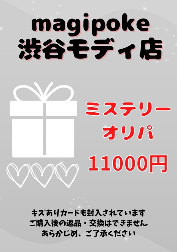 【🌟商品情報🌟】 ✨ミステリーオリパ ¥11000✨ 10口販売開始しました‼️ 高額品ショーケースにて展開しております😊 何が出るかはお楽しみ! ドキドキ感を味わえる商品です💖 ぜひ、magipoke渋谷モディ店までお越しください❣️