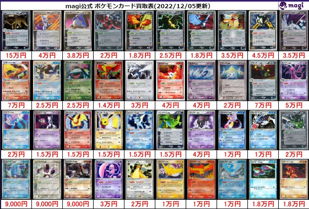 ※美品の買取価格です ※在庫が集まり次第または相場が変動次第、予告なく価格を変更する場合があります magi秋葉原店Twitter magi中野ブロードウェイ店Twitter magipoke渋谷モディ店Twitter ※買取価格については公開した日に限り有効であり、それ以降の有効性を保証するものではありません。