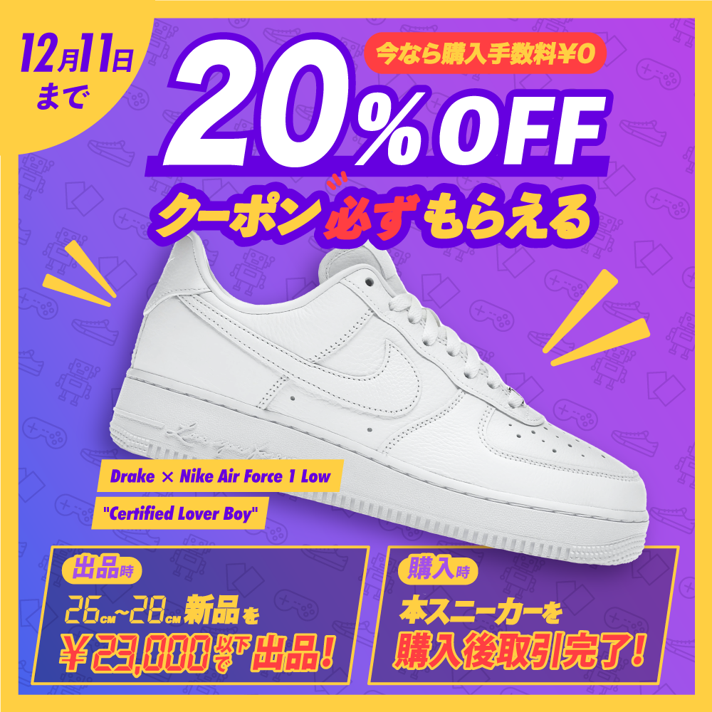 Drake × Nike Air Force 1 Low "CertIfied Lover Boy"の出品or購入で20%OFFクーポンが必ずもらえるキャンペーン開催!
