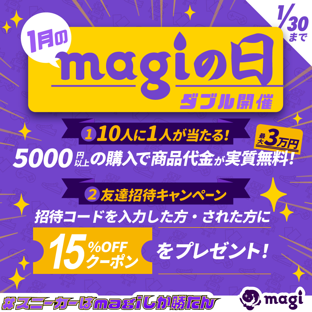 【10人に1人に購入金額全額分を還元&招待で15%クーポンプレゼント】「magiの日」キャンペーン(2023年1月分)開催のお知らせ