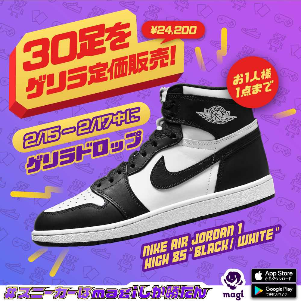2月15日発売のNike Air Jordan 1 High '85 "Black/Summit White"をmagi公式ショップにてゲリラ定価販売いたします!