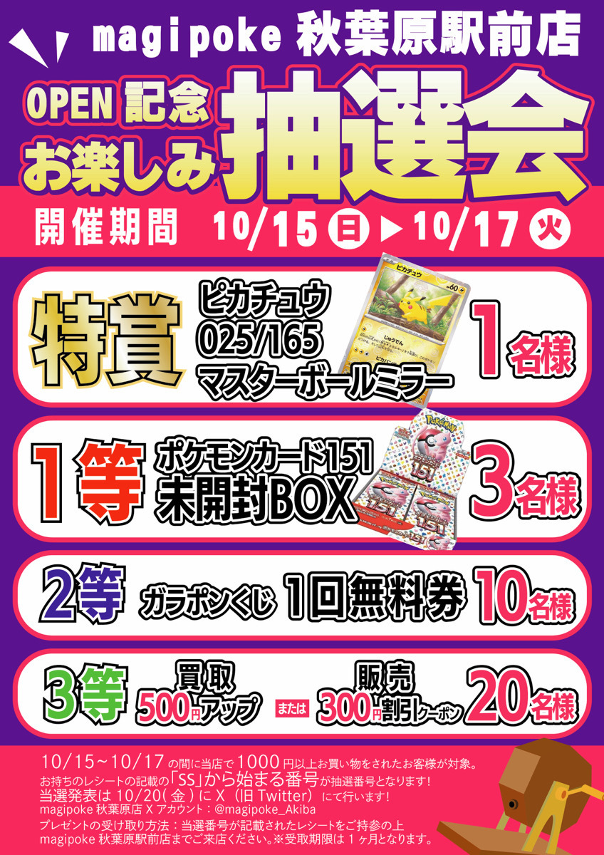 キャンペーン期間中、magipoke秋葉原駅前店で1000円以上お買い物いただいたお客様が対象🎁